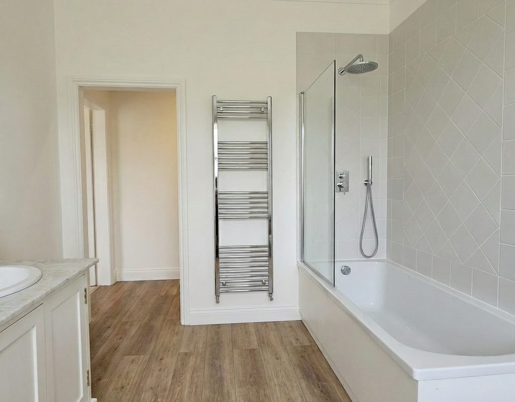 Upstairs, there are five double bedrooms, two bathrooms, and an en-suite shower room.