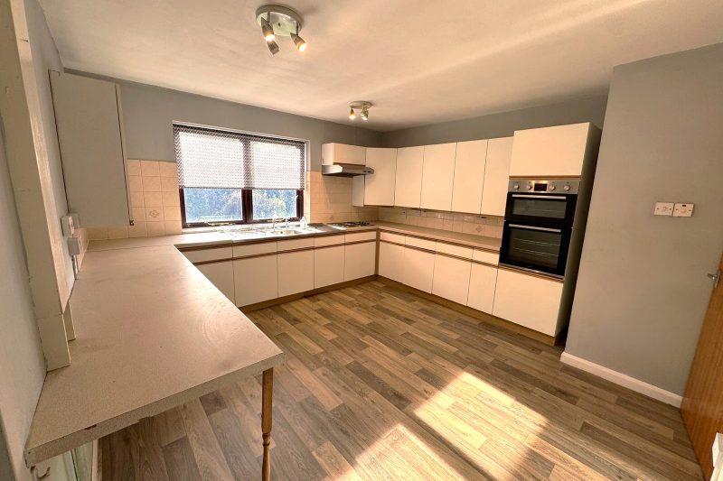 The large, well-appointed kitchen comes complete with an electric oven and hob, along with ample storage and workspace. A separate utility room provides plumbing for a washing machine and additional appliances. The bathroom includes a very practical large walk-in shower.